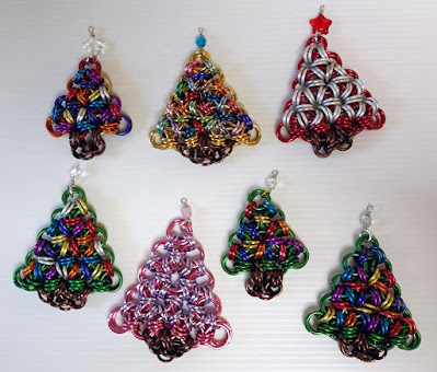 For a change of pace (and a lot of fun!) this year, I decided to make Christmas decorations using jewelry techniques ... beads were an obvious choice, and working with chain mail in a different context was very satisfying!!